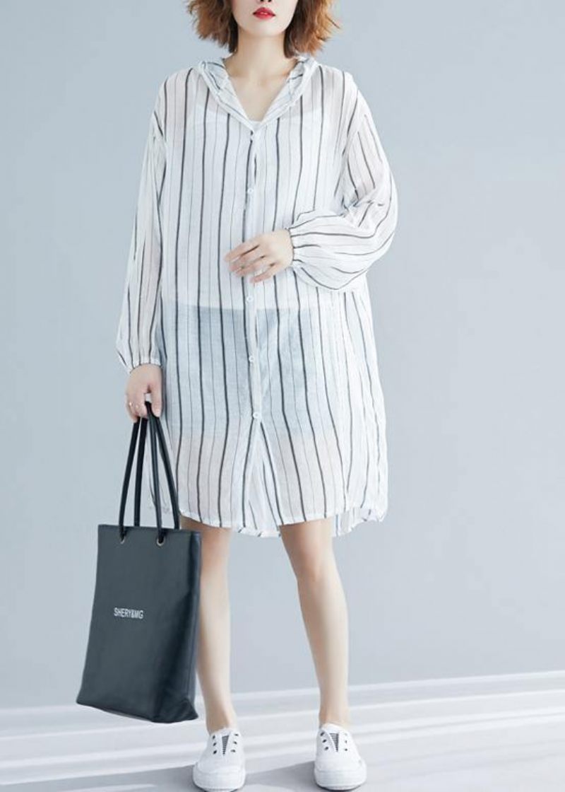 Fransk Svartrandig Chiffong Sommarskjortor Med Huva