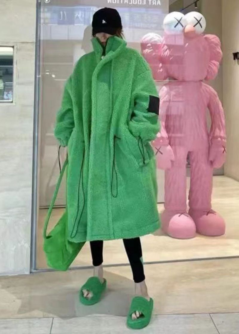 Franska Gröna Fickor Dragsko Patchwork Faux Fur Trench Winter