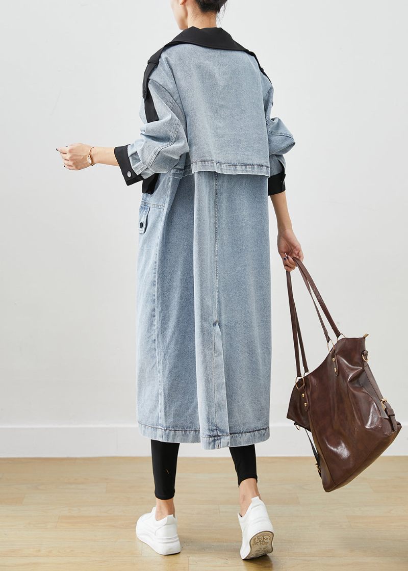 Franska Ljusblå Peter Pan Krage Patchwork Fickor Denimrockar Höst