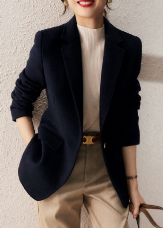 Franska Marinblå Knappfickor Ull Långa Kappor Vår