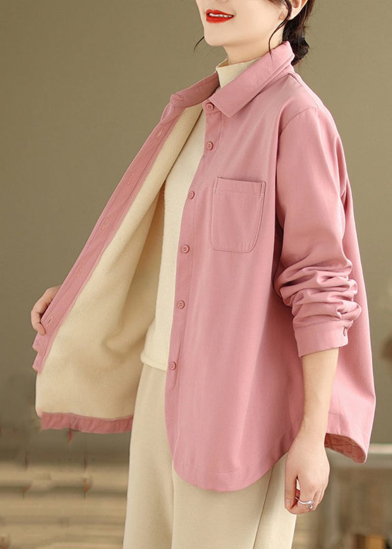 Franska Rosa Överdimensionerade Fickor Fleece Ullfodrade Kappor Vinter