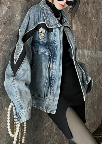 Gör-det-själv Navy Oversized Print Fine Bomullsfyllda Jackor Vinter