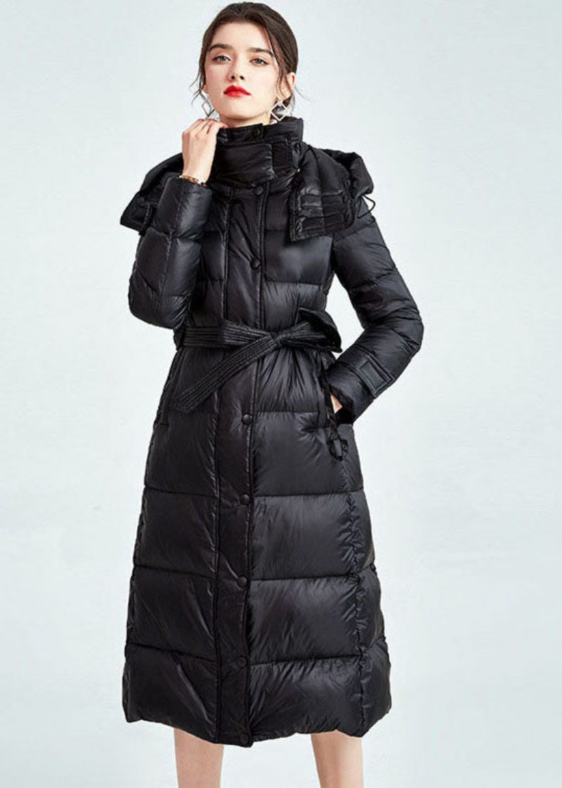 Gör-det-själv Svart Huva Förläng Duck Down Cinch Coats Vinter