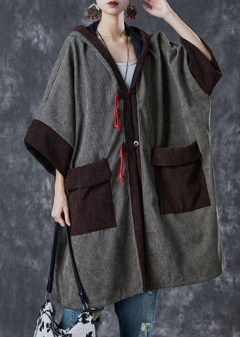Grå Patchwork Varm Fleece Manchester Trench Hooded Pockets Spring