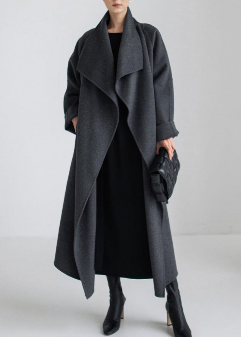 Grå Peter Pan Krage Tie Midja Yllerock Långärmad
