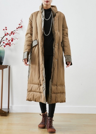Gratis Frakt-lyx Plus Size Vinterkappa Beige Hooded Large Pockets Coat