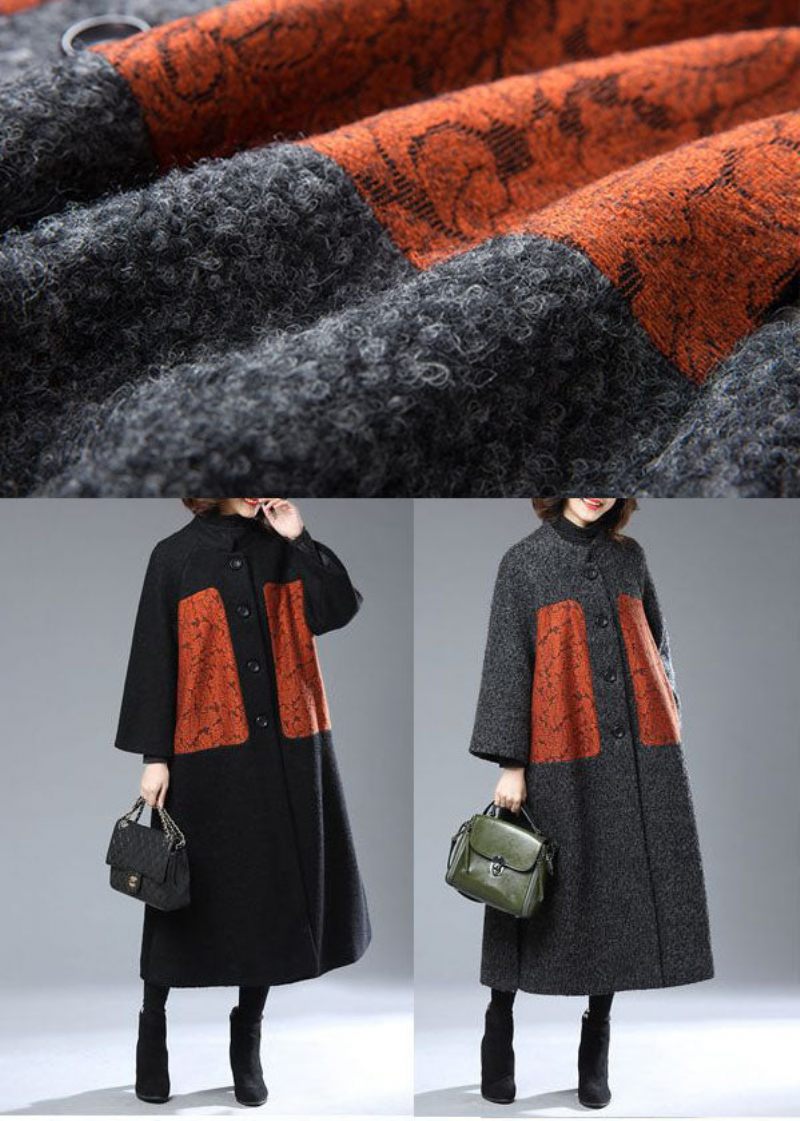 Grått Tryck Ylle Trenchcoats Knapp Sida Öppen Vinter