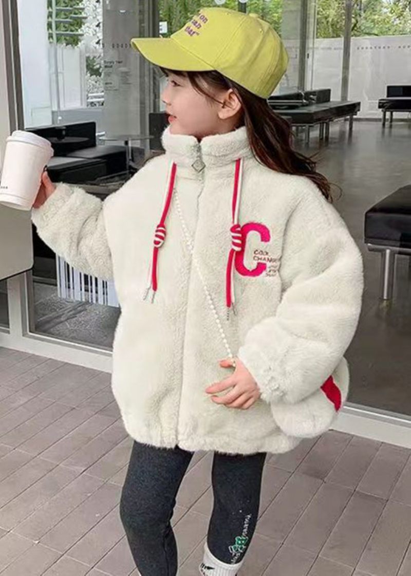 Härliga Vita Broderade Fickor Varm Fleece Barn Flickkappor Vinter