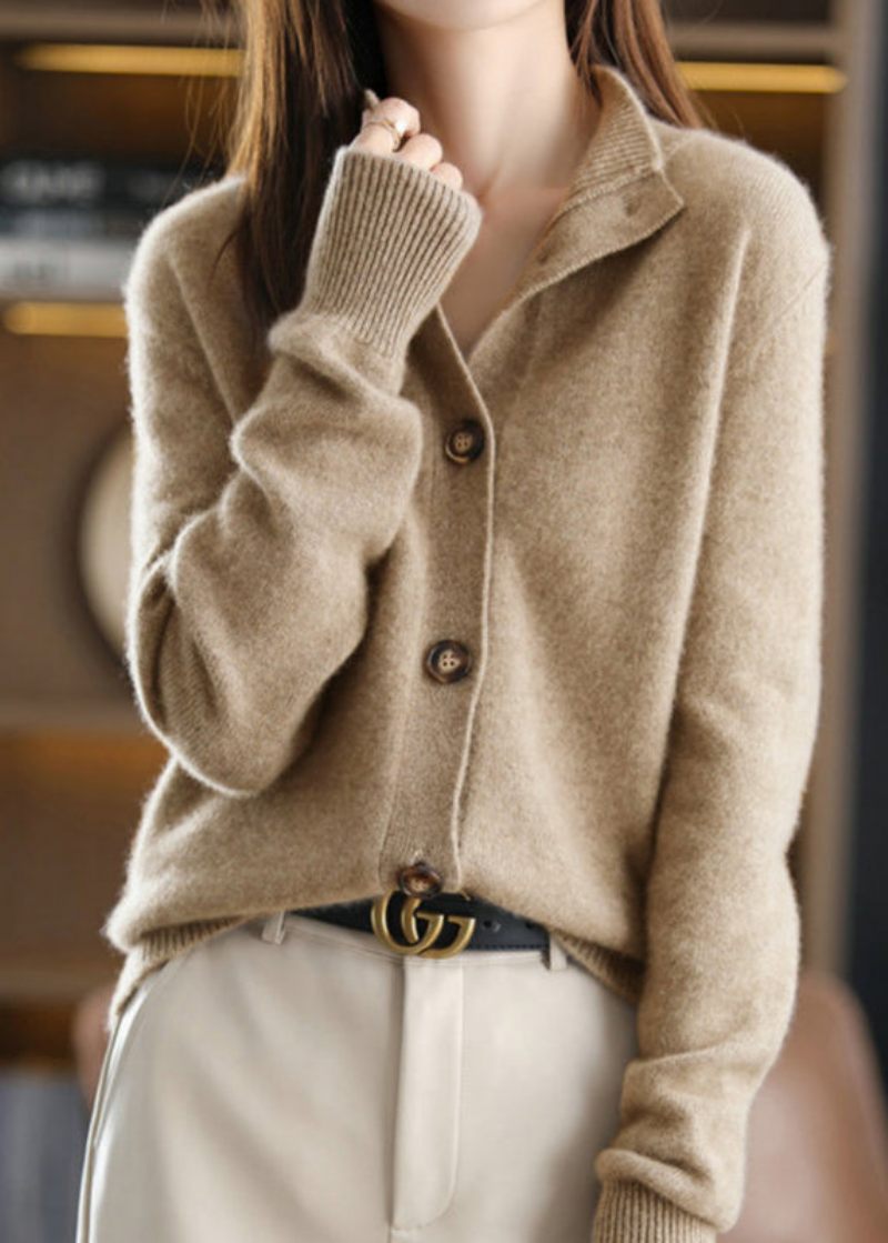 Handgjord Kamelstativ Krage Ylle Cardigan Långärmad