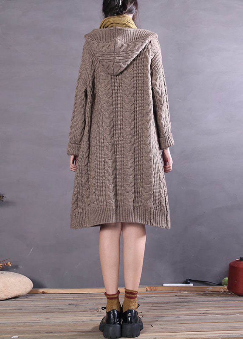 Handgjorda Khaki Hooded Button Woolen Cardigans Spring
