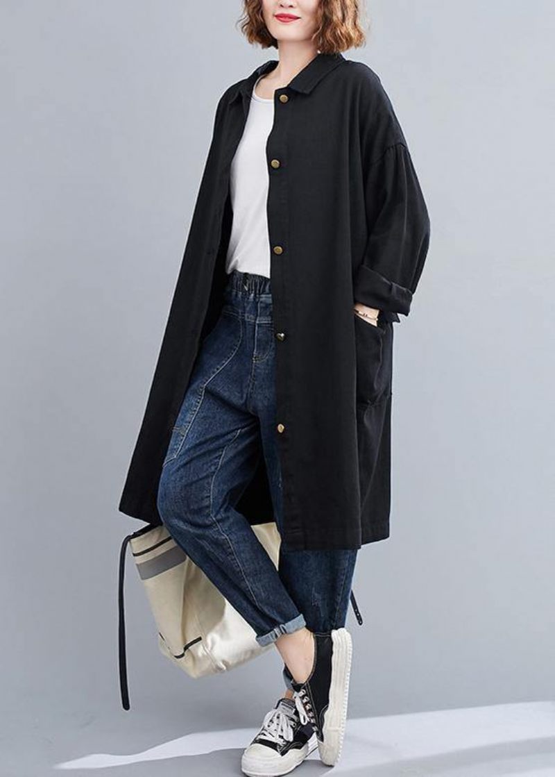 Handgjorda Lapel Patchwork Spring Tops Dam Tunika Svart Blus