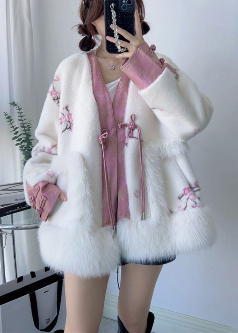 Handgjorda Retro Blå V-hals Tofs Mink Cashmere Coats Vinter