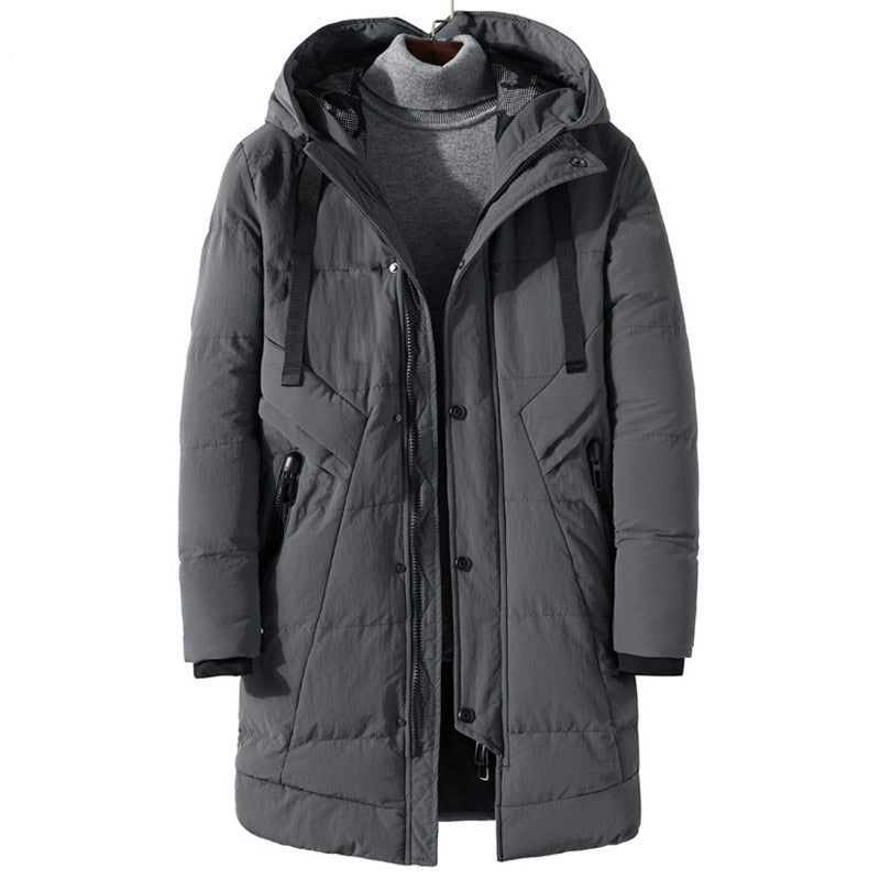Herr Vinter Lång Tjock Parkas Jacka Ytterkläder Fritidskläder Lös Varm Bomull Vadderad Kappa Överrock