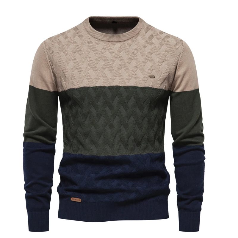 Höst Patchwork O-ringad Tröja För Män Varm Vinterstickad