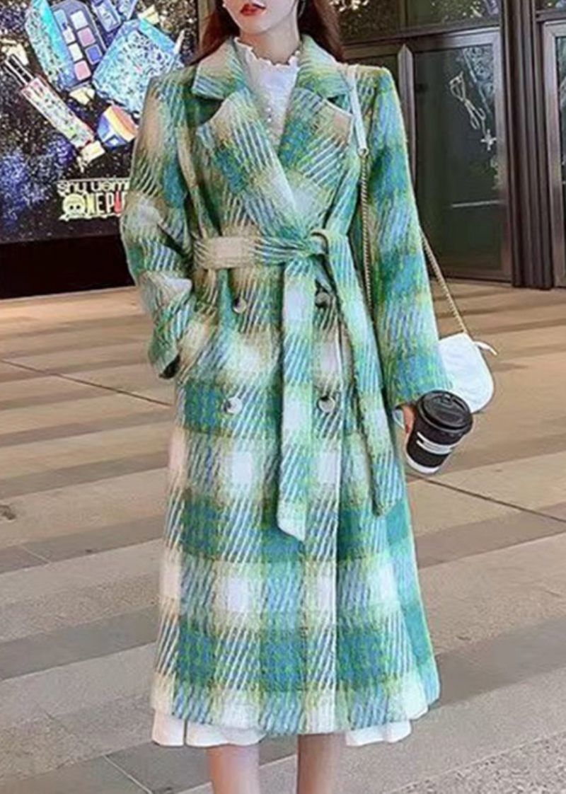 Italiensk Grön Knapp Slips Midja Ull Tjock Kappa Höst