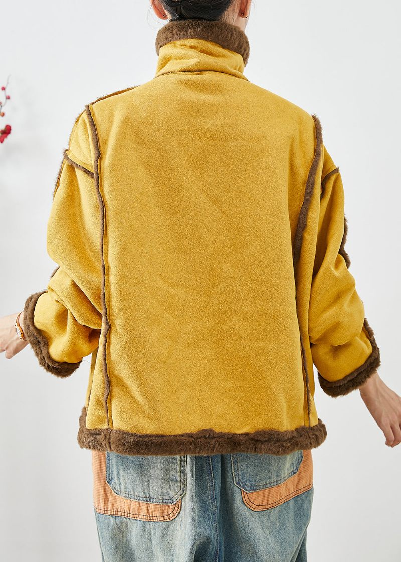 Italiensk Gul Lapel Dubbelbröst Fleece Ullfodrad Kappor Vinter