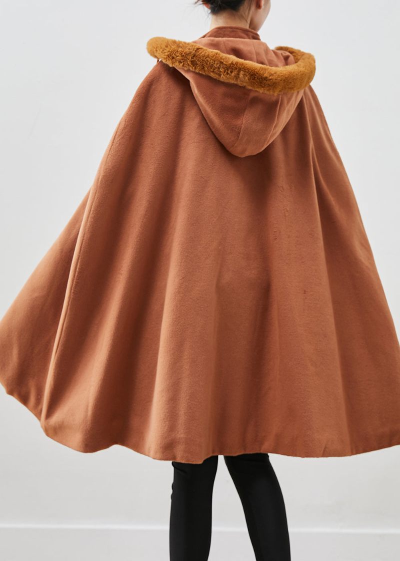 Italiensk Khaki Pälskrage Oversized Varm Fleecerock Kappa Ärmar