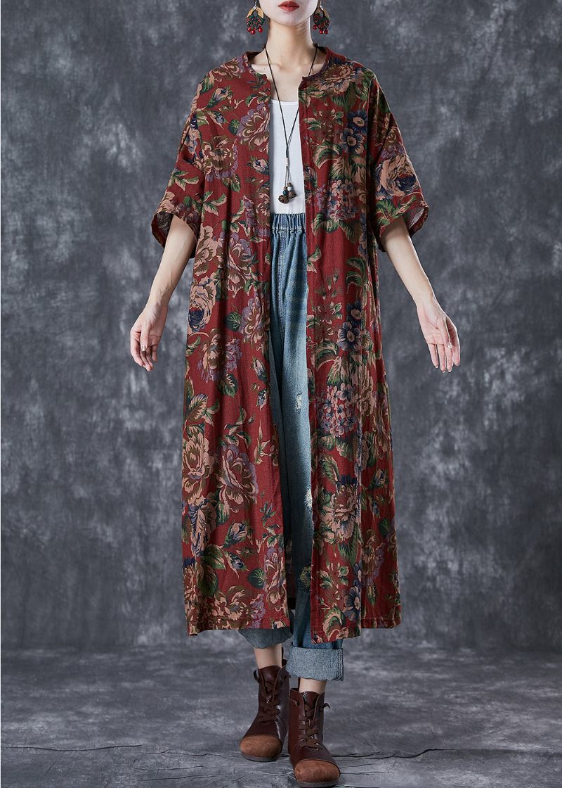 Italiensk Röd Överdimensionerad Bomull Långa Cardigans Sommar