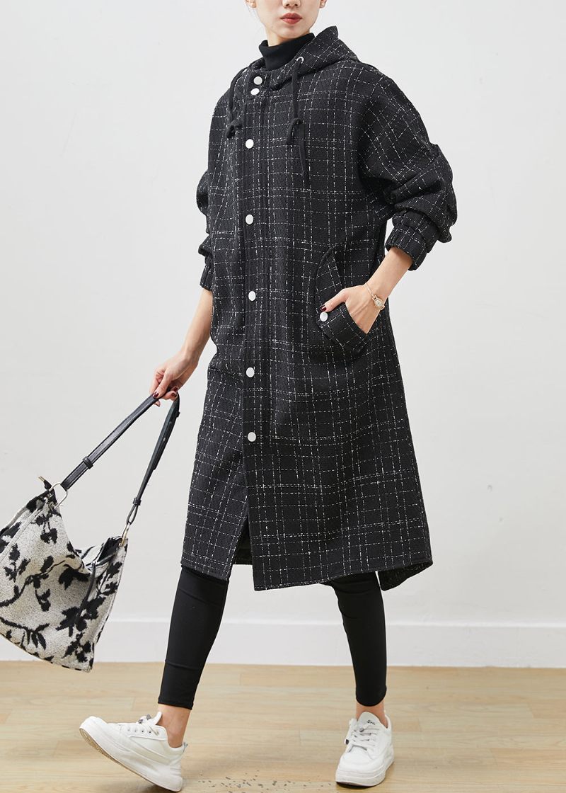 Italiensk Svart Huva Pläd Yllerock Ytterkläder Spring