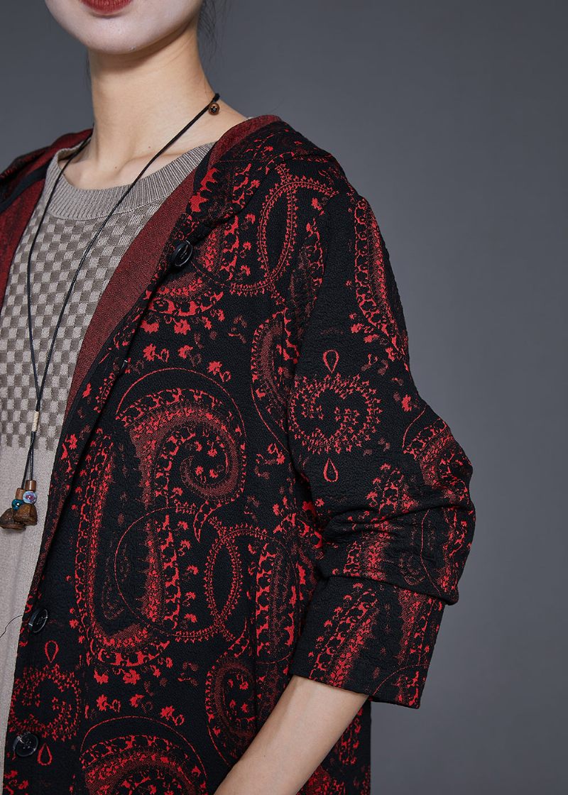 Italiensk Tråkig Röd Oversized Print Bomull Lång Cardigan Fall