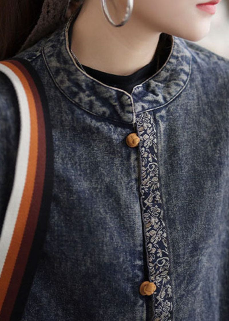 Italienska Blå Stativ Krage Knapp Jeansjackor Våren