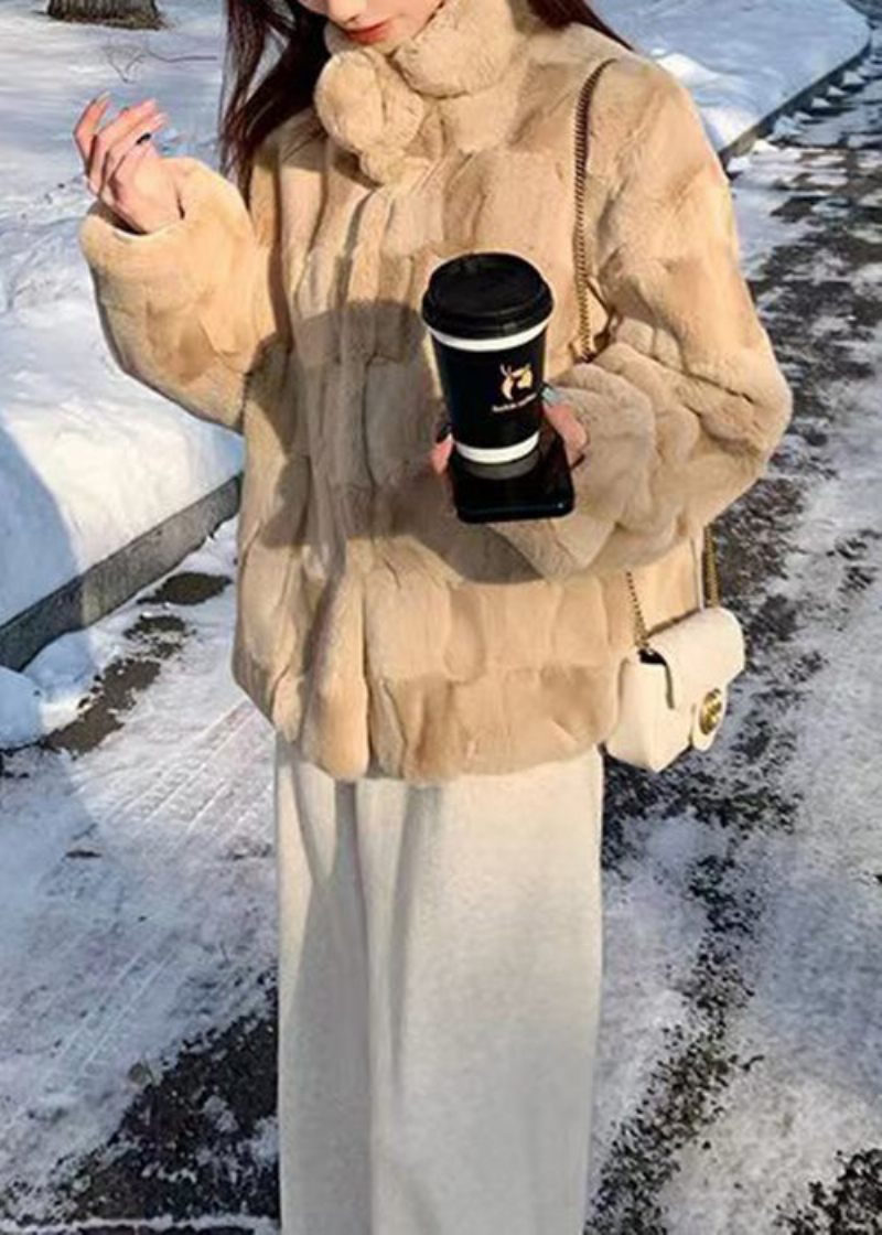 Italienska Khaki Button Fickor Fuzzy Furd Coats Vinter