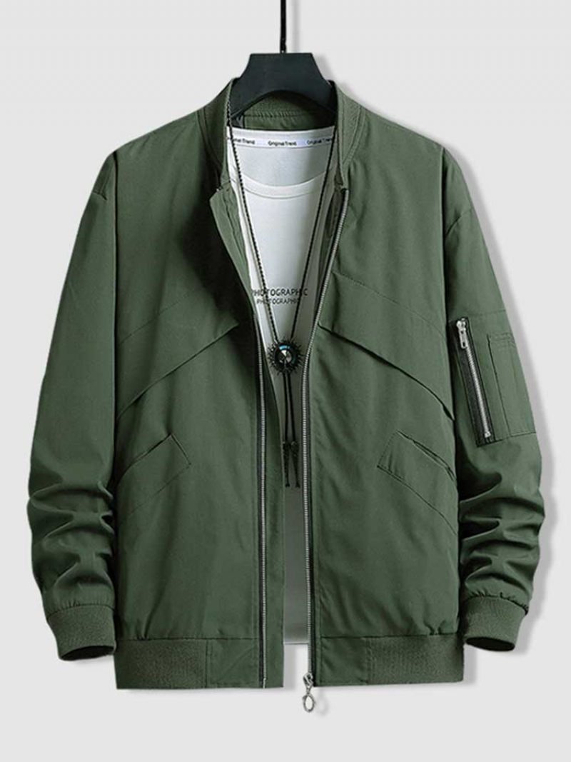 Jackor För Män Solid Dragkedja Bomberjacka Stativkrage Höst Vinterkappor Basic Streetwear Topcoat Ytterkläder Med Ficka