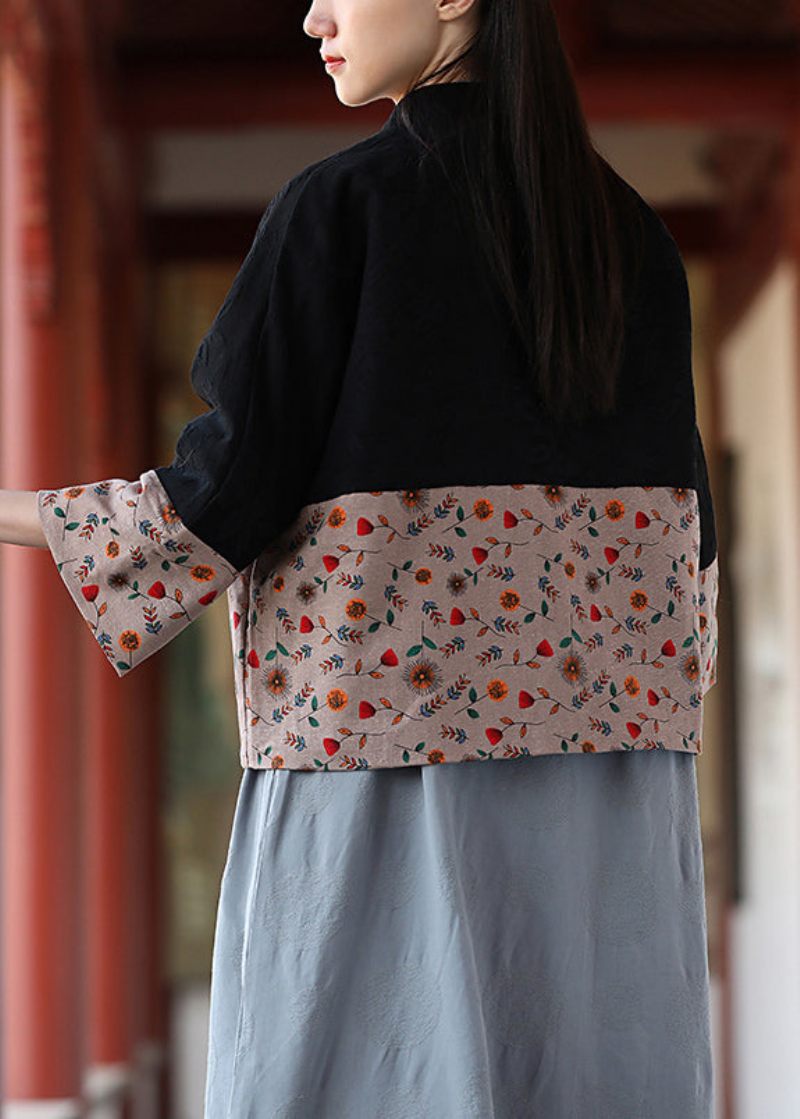 Jacquard Svart Spetstryck Bomullsfylld Kappa Höst