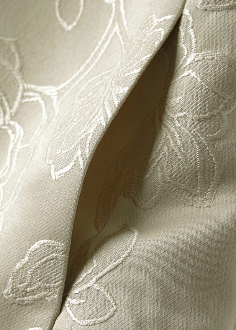 Jacquard White Tan O Neck Button Patchwork Sidenväst Ärmlös