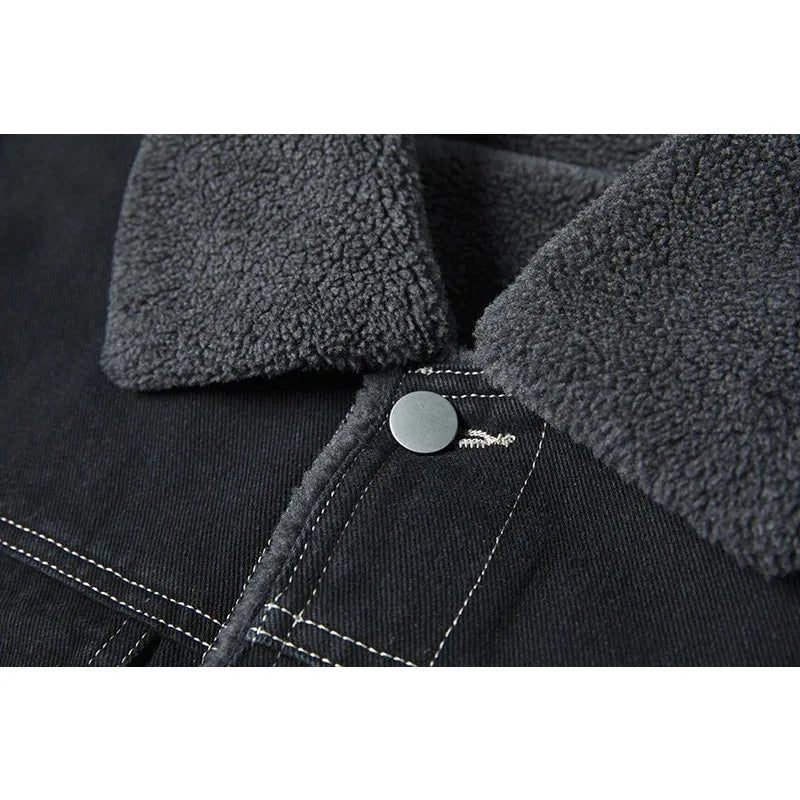 Jeansjacka I Fleece Herr Tjockad Varm Vindjacka Cowboyjackor Med Flera Fickor Friluftsliv Casual Lös Överrock Vinter