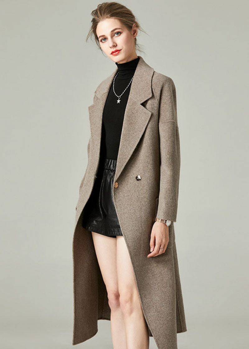 Khaki Solid Woolen Warp Coats Peter Pan Krage Sashes Winter