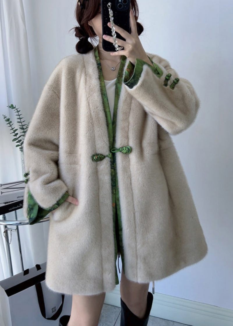 Kinesisk Stil Aprikos V-halsknapp Dragsko Mink Cashmererockar Vinter