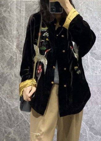 Kinesisk Stil Blå Broderad Knapp Denim Coat Spring