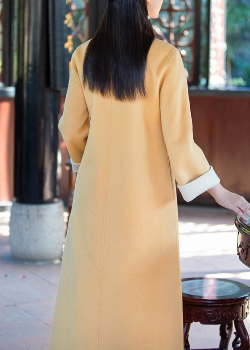 Kinesisk Stil Gul Stativ Krage Fickor Woolen Trench Winter
