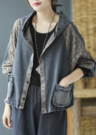 Kinesisk Stil Svart Blomma Broderad Knapp Sidenkappa Långärmad