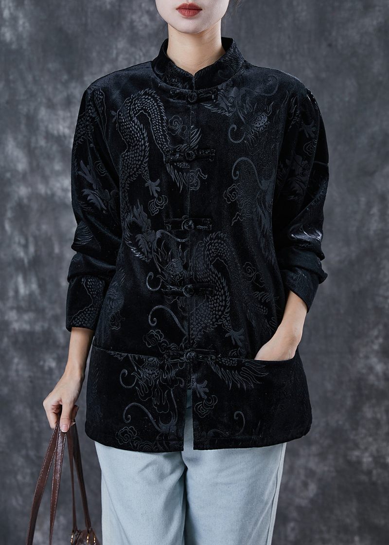 Kinesisk Stil Svart Broderad Manchesterjacka Vår