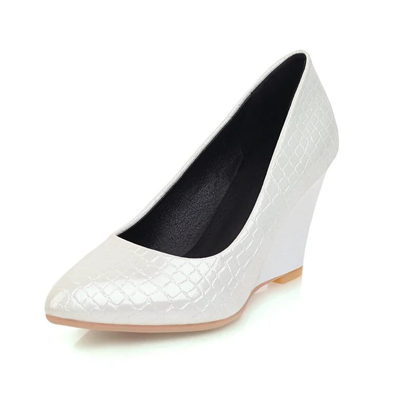Klassiska Wedges Klackar Pumps Skor Dam Casual Spetsiga Svart Vit Klänning