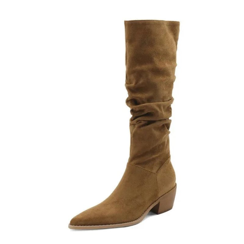 Knähöga Stövlar Motorcykel Spetsad Tå Office Lady Höga Höst Vinter