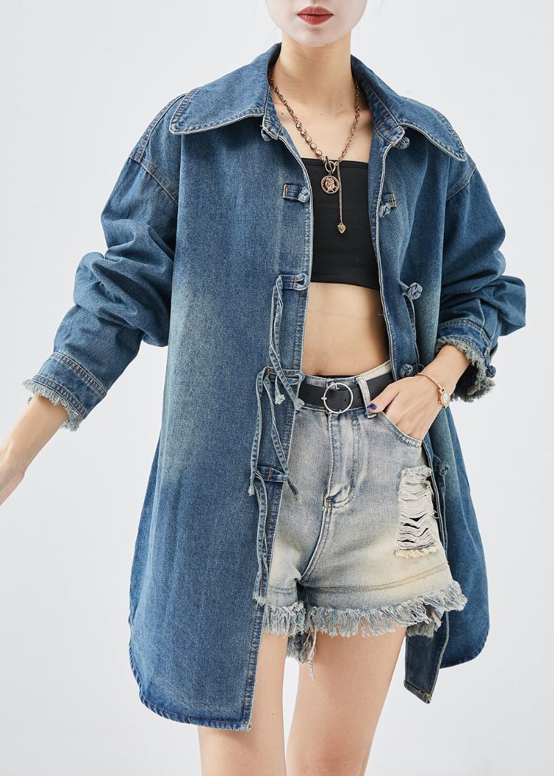 Konst Blå Tofs Kinesiska Knapp Jeansrockar Höst
