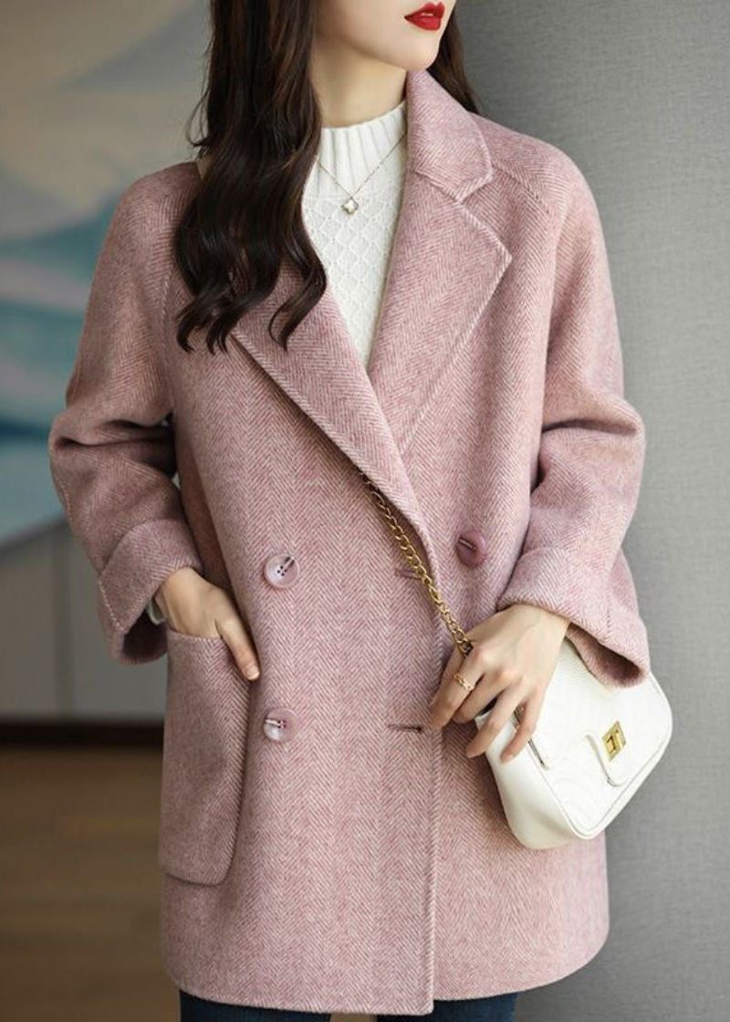 Konst Rosa Lapel Dubbel Bröst Tjock Ylle Trench Fall