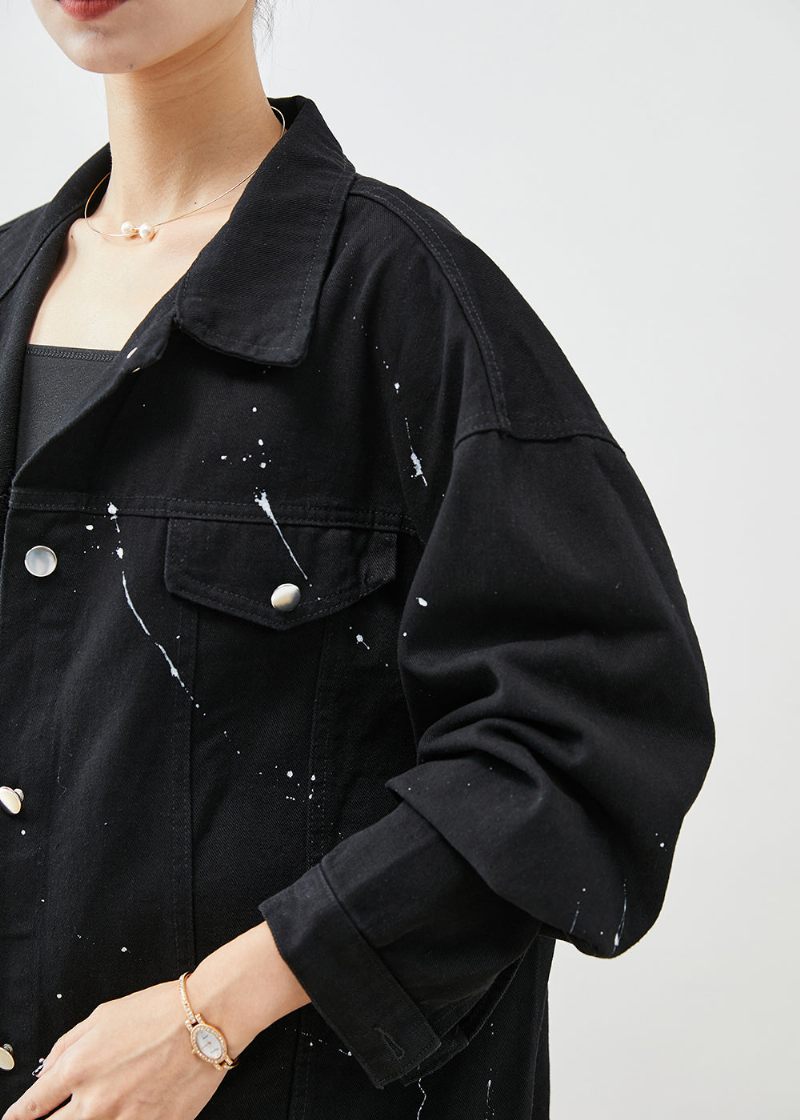 Konst Svart Oversized Brevtryck Denimjackor Höst