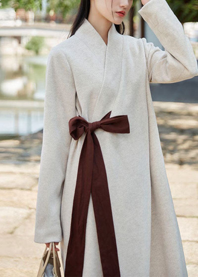 Konst Vit V-hals Patchwork Tie Midja Ullklänning Vår