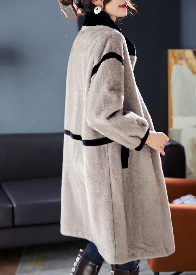 Konstgrå Stativ Krage Patchwork Mink Sammetsrockar Vinter