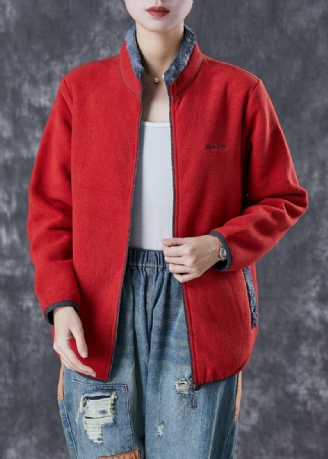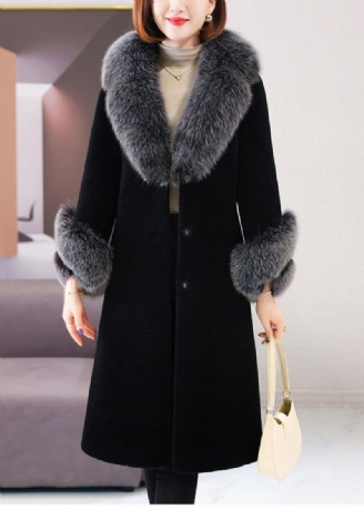 Kort Fårskinnsjacka Med Svart Knapp Med Lång Ärm