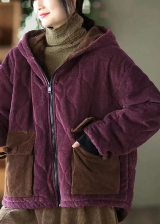 Kvinnor Aprikosfickor Kinesisk Knapp Patchwork Bomullsfyllda Jackor Vinter