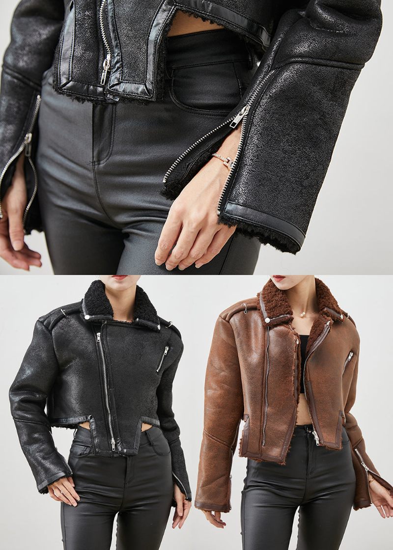 Kvinnor Brun Asymmetrisk Fuskpälsjacka Med Dragkedja Ytterkläder Vinter