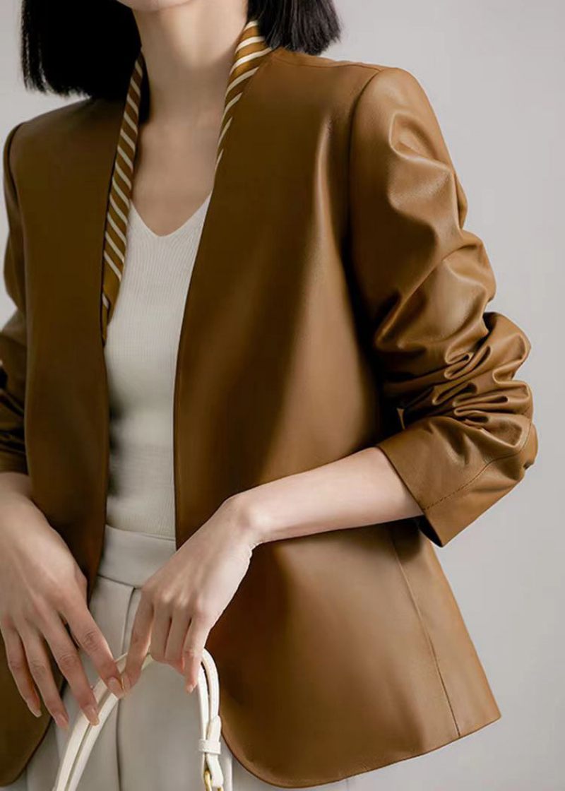 Kvinnor Brun V-hals Patchwork Fårskinnsrockar Höst