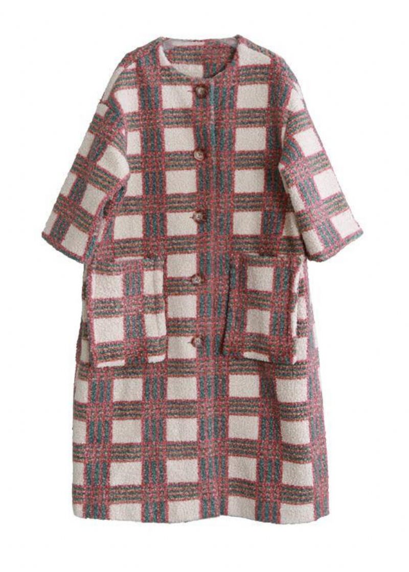 Kvinnor Casual Trenchcoat Coat Naken Rutiga Fickor Button Ull Kappa För Kvinna
