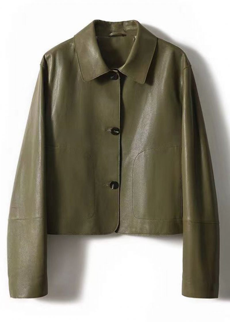 Kvinnor Grön Peter Pan Krage Fickor Patchwork Fårskinnsrockar Höst