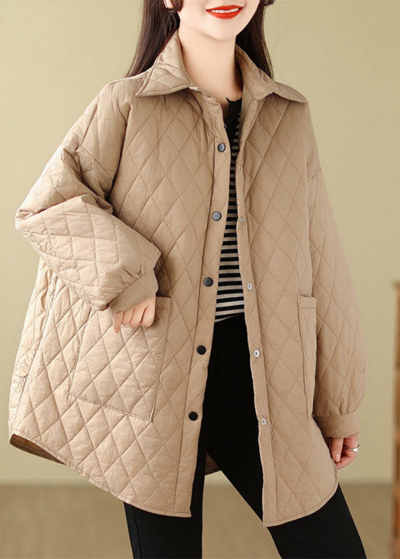 Kvinnor Kaffe Peter Pan Krage Fickor Pläd Patchwork Parkas Långärmad